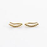 Earrings made of a beaded wire that goes up the earlobe. This piece of jewelry can be worn as a pair or asymmetrically. This unique design makes the whole outfit and can be made to measure to perfectly match the shape of your earlobes.
