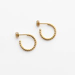 Hoops made from a series of small hammered beads. The hammering creates facets on these beads, making them sparkle like small diamonds. This elegant model adds the perfect shiny touch to your everyday looks!